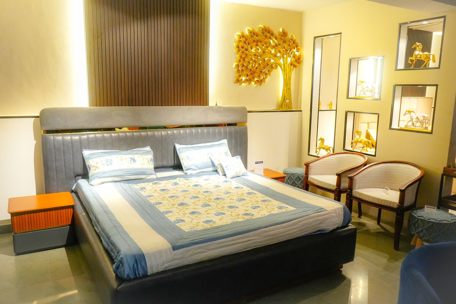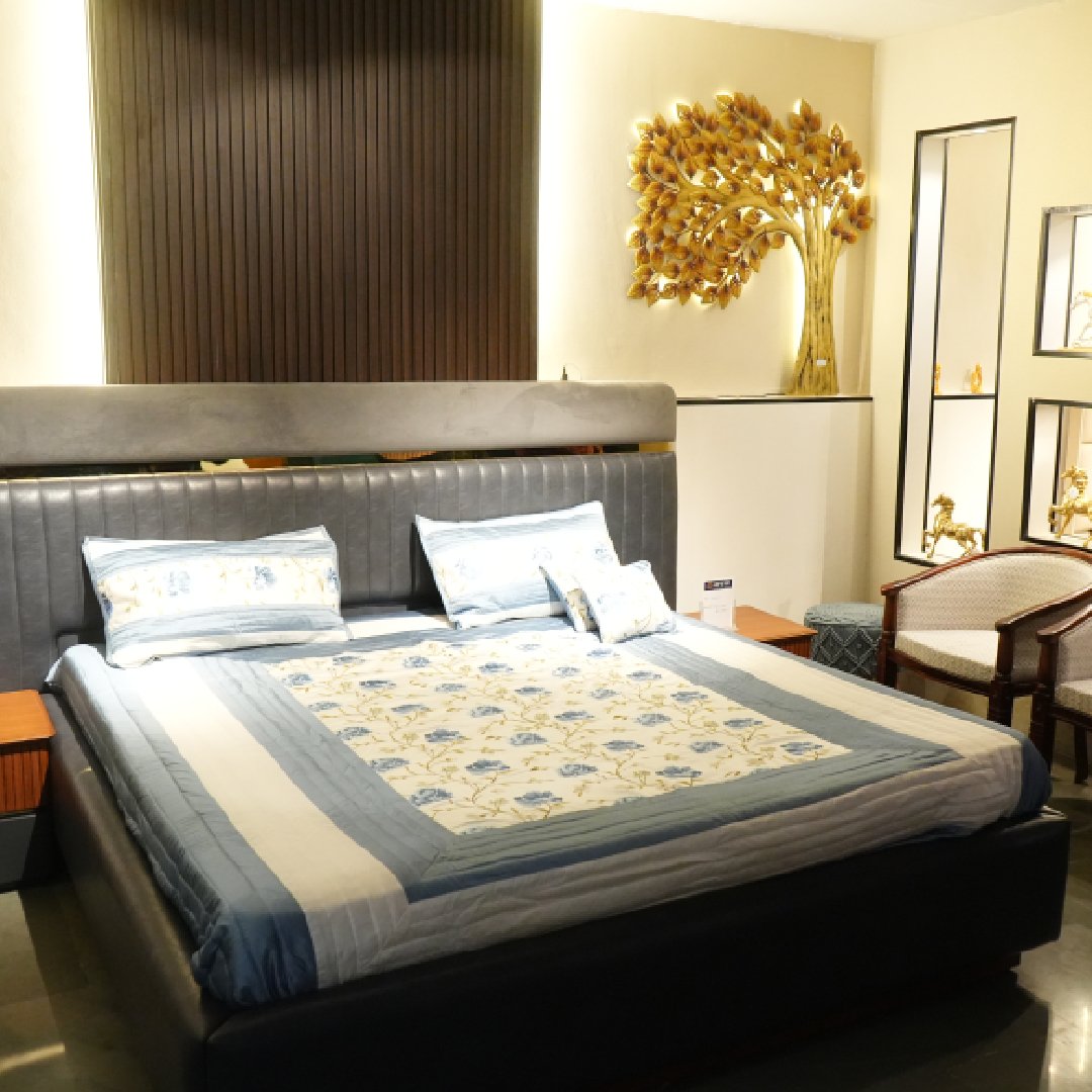 Experience the epitome of comfort and style with our upholstered bed accompanied by a matching bedside table. The plush headboard, luxurious upholstery, and convenient bedside storage create a cozy and elegant sanctuary, transforming your bedroom into a haven of relaxation and sophistication.